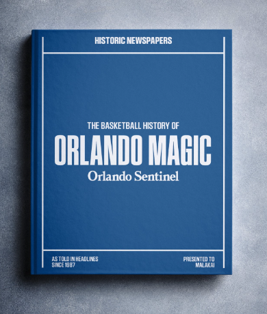 Orlando Magic newspaper book lets fans relive the team’s most thrilling moments with authentic headlines from the Orlando Sentinel. From the Magic’s debut in 1989 to the rise of stars like Shaquille O’Neal, Penny Hardaway, Dwight Howard, and Nikola Vucevic, this hardcover collection captures milestone games, dramatic finishes, and defining events in franchise history. Each page brings the excitement, triumphs, and unforgettable stories of Orlando basketball to life.
